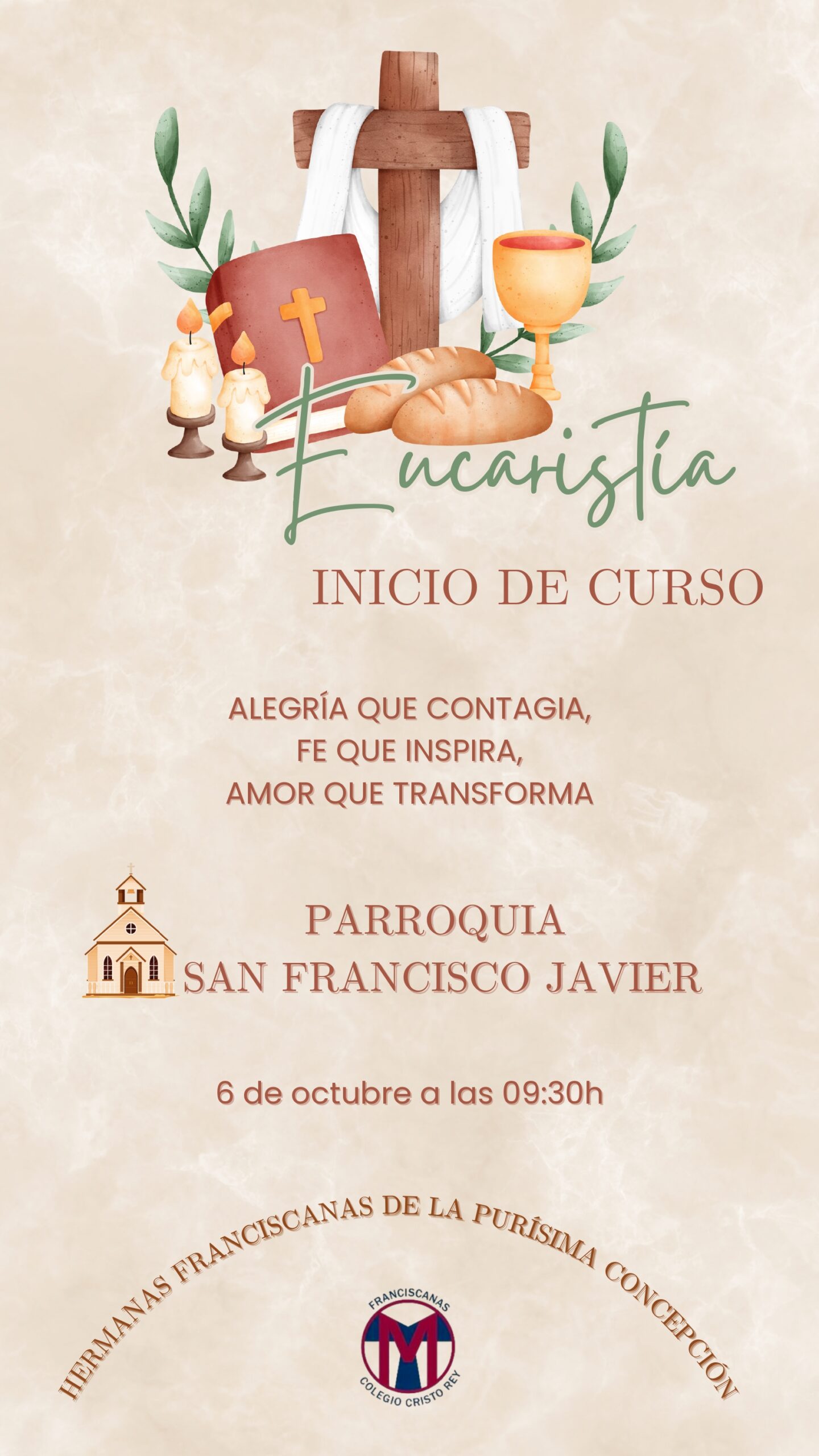 Con ilusión os invitamos a compartir con nosotros la Eucaristía de inicio de curso, un momento especial para poner en manos del Señor este nuevo curso, siguiendo el espíritu de San Francisco de Asís, que nos enseñó a vivir con sencillez, alegría y fraternidad.
